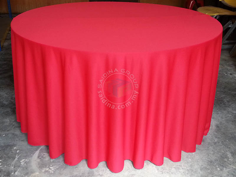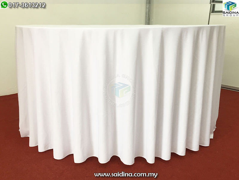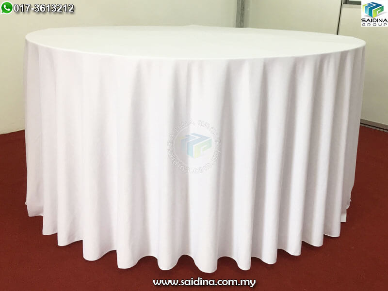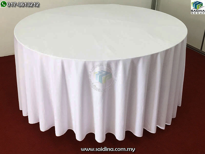 Alas meja bulat jenis ini digunakan sebagai alas meja asas dengan kain PQ yang tebal dan labuh 3 kaki ke bawah. Ianya sangat cantik untuk majlis perkahwinan atau sebarang majlis rasmi.