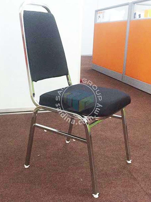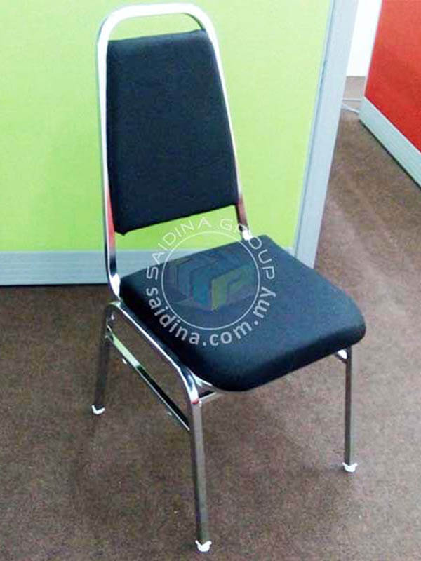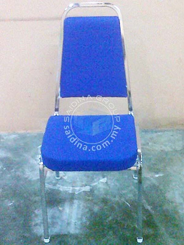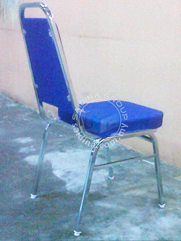 Kerusi Banquet dengan Ragka besi Chrome BErkilat yang menjadikannya menarik. Fabrik untuk span tempat duduk berwana biru, maroon dan hitam diperbuat dari kain yang berkualiti. Kerusi banquet ini adalah pebagai guna disebabkan kecantikan rekabentuk dan rangka besinya yang berkilat.
